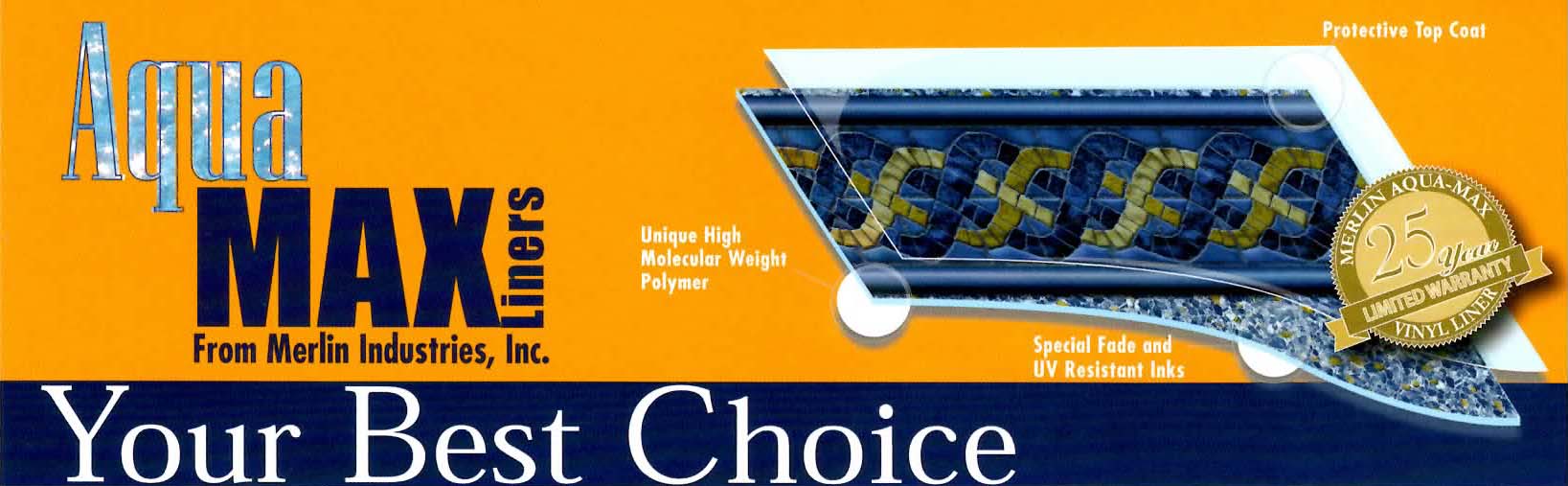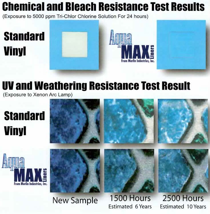 Aqua-Max liners are specially formulated to provide greater Ultraviolet resistance and far greater resistance to today's pool chemical systems and occasional chemical misuse. Aqua-Max vinyl also contains over twice as much anti-fungal and anti-bacterial protection than standard vinyl liners.